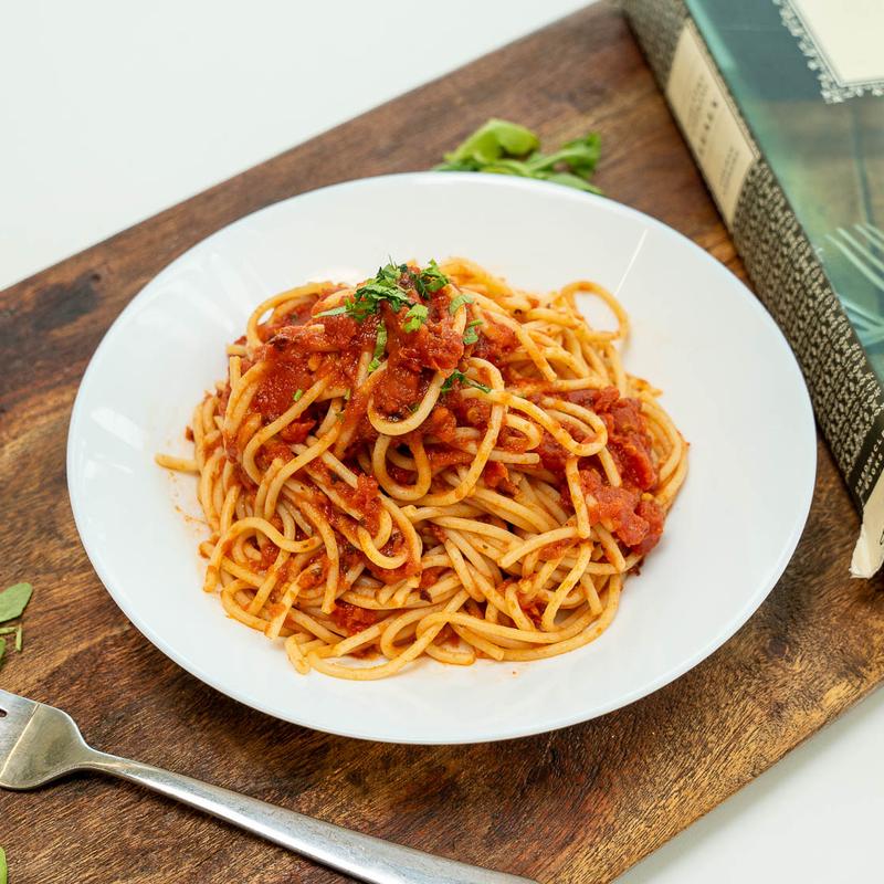 Marinara (V) | Arrabbiata (V, S) | Pink (V) | Bolognese | Pesto (V) | Alfredo (V)
